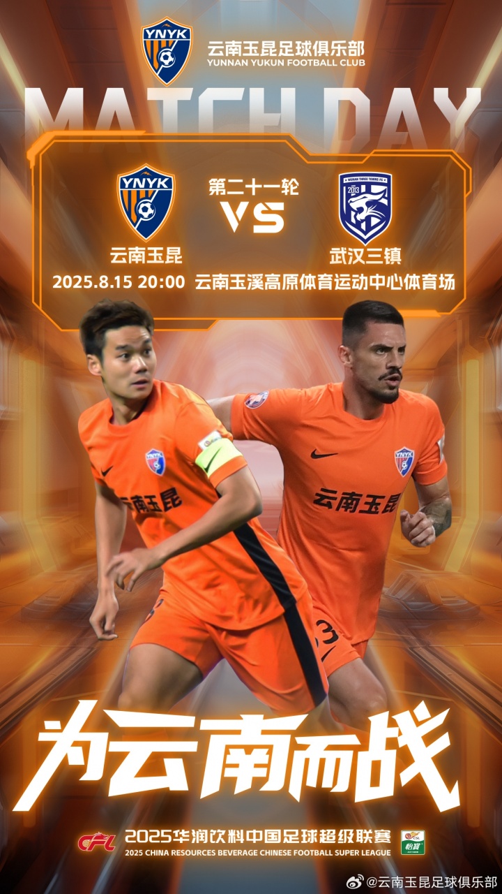 08月15日讯 今晚20点,中超第21轮 云南玉昆vs武汉三镇。赛前首发气势如故公布。