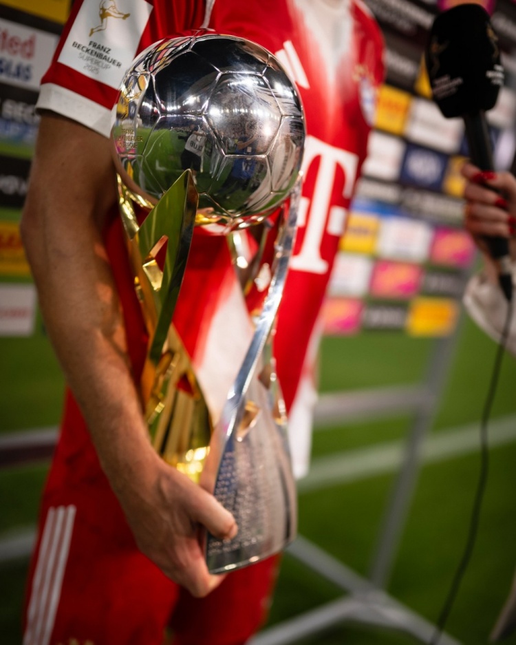 凯恩更新社媒动态,晒出手捧德超杯冠军奖杯的像片,配文:“本赛季第一波像片大放送!”