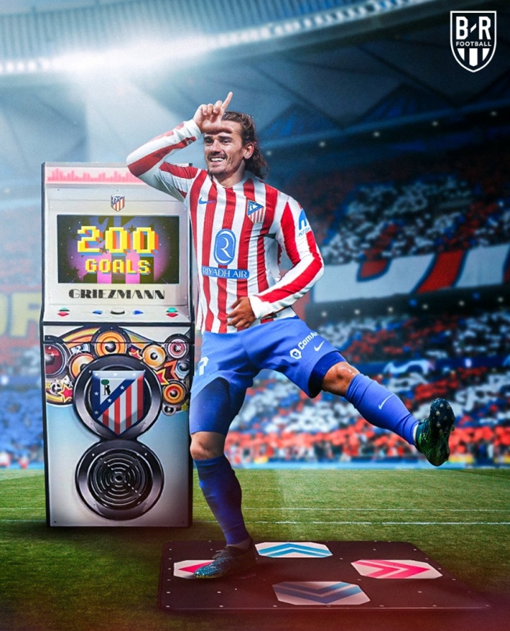 这粒进球是格列兹曼为马竞打进的第200球,他以454次出场完成这个竖立!