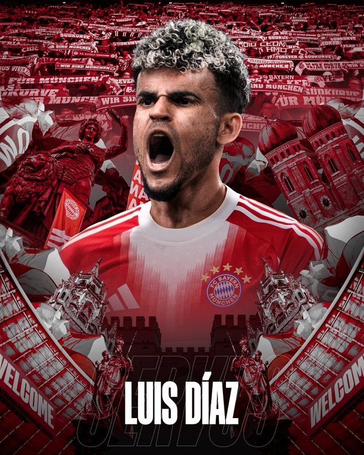 7月30日讯 拜仁也曾官宣签下28岁的利物浦边锋路易斯-迪亚斯,转会费7000万欧元+500万奖金。而他也将成为拜仁队史第3位哥伦比亚球员。