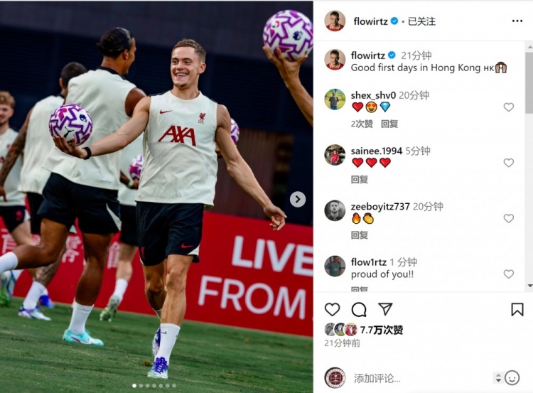 维尔茨随利物浦来到中国香港干预季前赛,他在豪放媒体上晒出多张熟识像片。