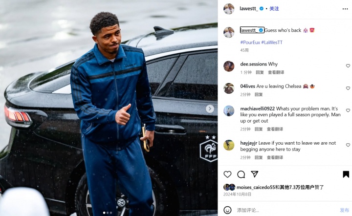 👀啥情况?韦斯利-福法纳删除了社媒上悉数切尔西关系的骨子