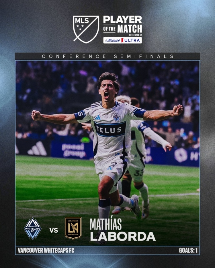 破门+罚进制胜点球!拉沃尔达当选温哥华vs洛杉矶FC全场最好球员