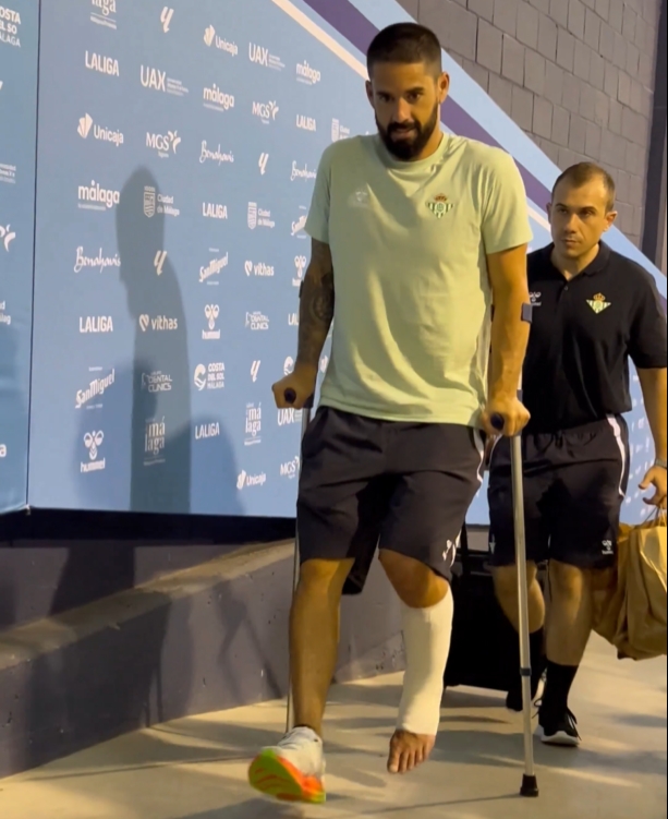 友谊赛贝蒂斯1-3不敌马拉加的比赛中,伊斯科遭拉鲁比亚背后凶狠放倒,赛后被拍到拄拐离开球场。