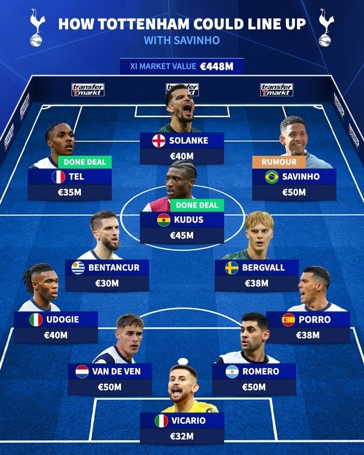 德转预测热刺新赛季阵容:绯闻对象萨维尼奥在列
