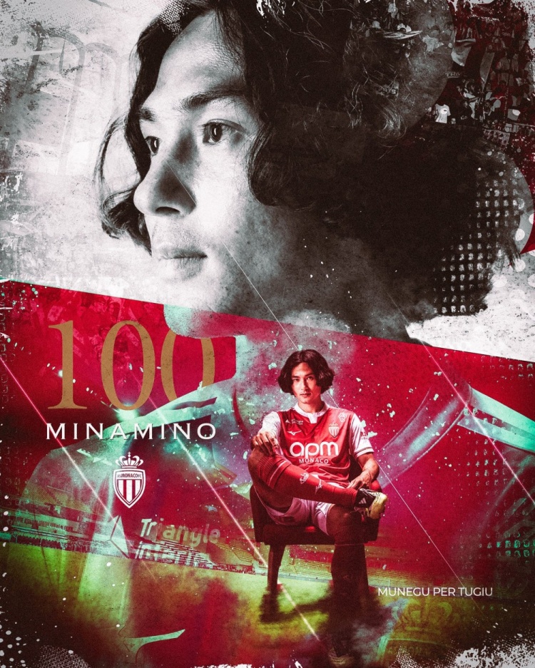 本场比赛开始前,摩纳哥官推晒出南野拓实的海报,纪念他达成各项赛事出战100场的成就。