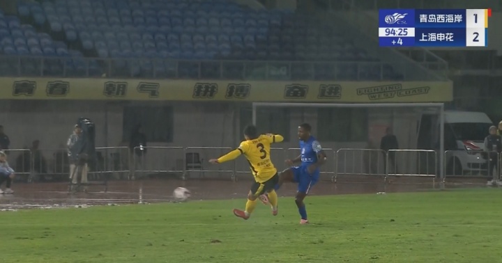 10月17日讯 申花vs西海岸最后时刻,赵宏略双腿跳起蹬踏马纳法,差点吃到西海岸第三红!