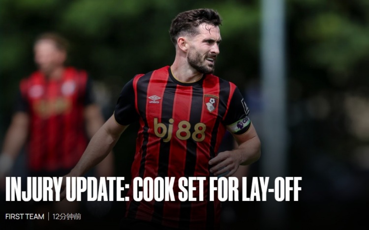 官方:伯恩茅斯中场库克在热身赛内侧副韧带受伤,但无需接受手术
