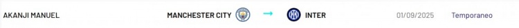 阿坎吉从曼城加友邦米,交游花样露馅为租赁,据此前罗马诺报谈称,这笔交游为200万欧租赁费+1500万欧买断费。