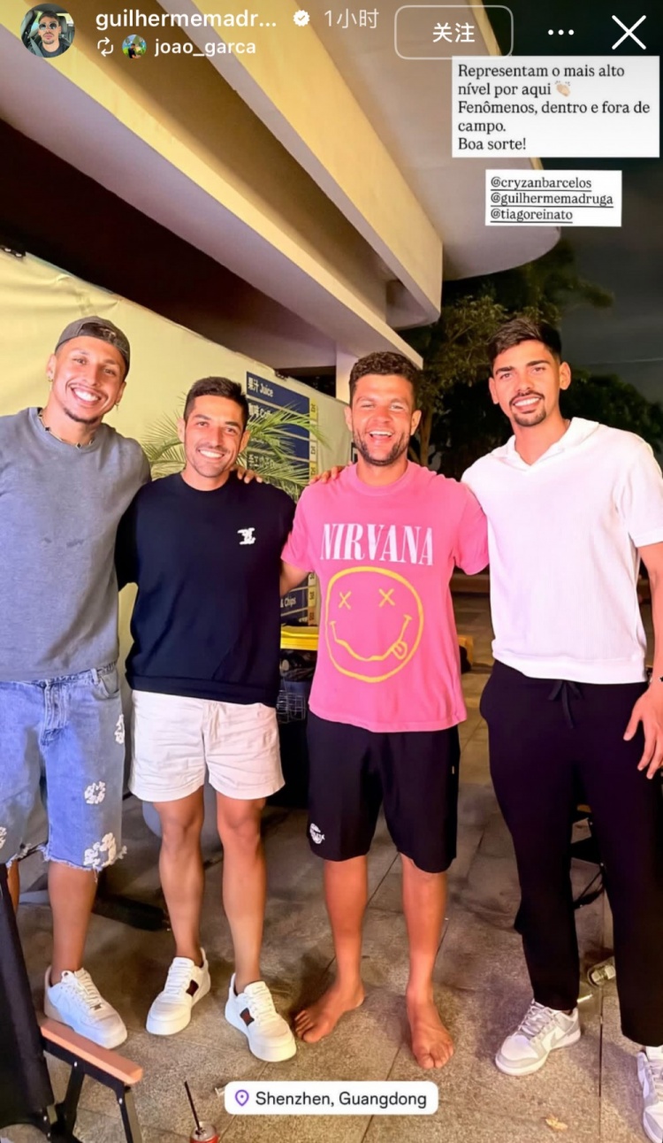10月20日讯 本日,泰山队外助马德鲁加更新社媒,晒出和队友克雷桑等的合影,定位理会几东说念主在深圳。