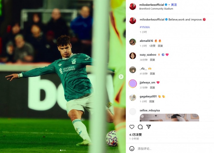 打进利物浦生计处子球!凯尔凯兹社媒晒照自勉:肯定、奋勉并提升