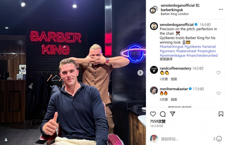 8月5日讯 有名网红发型师Senol Erdogan在社媒中晒出了与枪手前卫约克雷斯的合影,后者在新赛季运转前理了新发型。