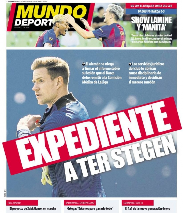 球员的医疗陈述被视为私东谈主信息,若是莫得其本东谈主的授权,巴萨无法将陈述分享给西甲联赛部门。巴萨一经决定将此事件交代至法务部门,独立即脱手规律贬责顺序。若是俱乐部法务和董事会批准行动,他们将里面处罚特尔施特根。