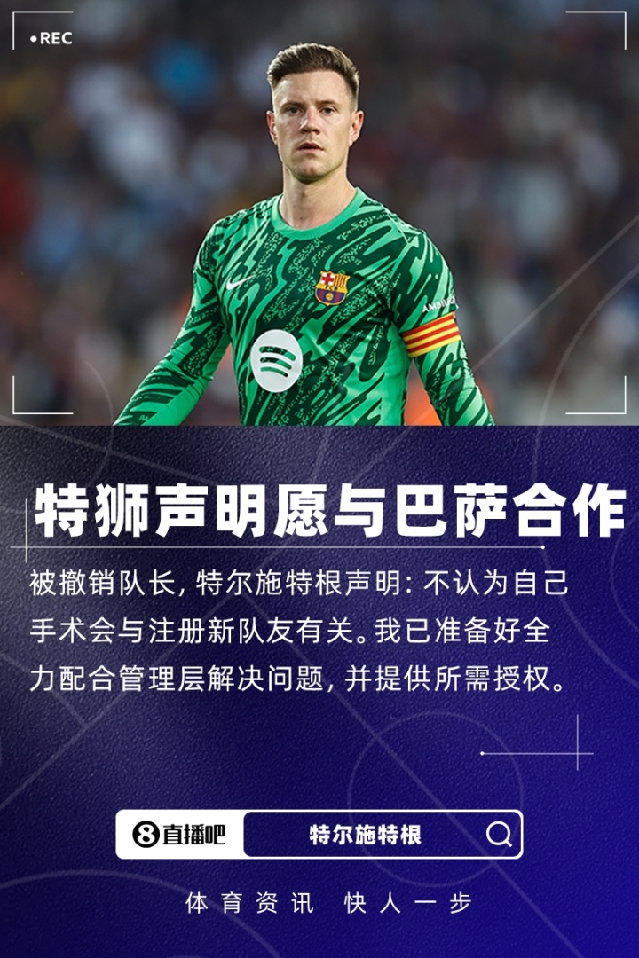 巴萨随后也发布公告,证实得回授权,并收复特尔施特根队长身份。