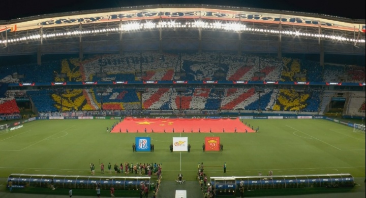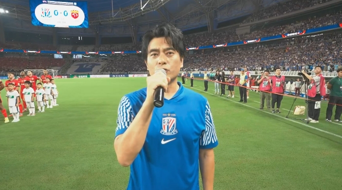 壮不雅!申花球迷赛前构成弘远队徽TIFO,知名演员陈龙领唱国歌