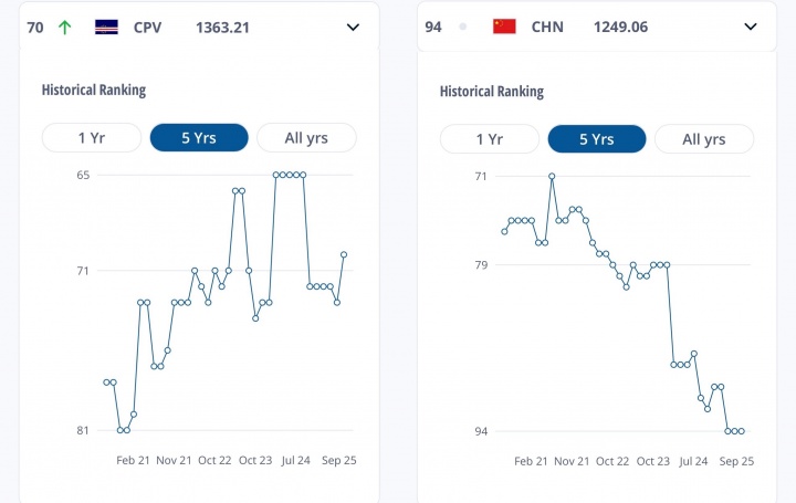 佛得角寰宇名挨次70位,比国足(94位)高24位,在非洲名挨次13位。
