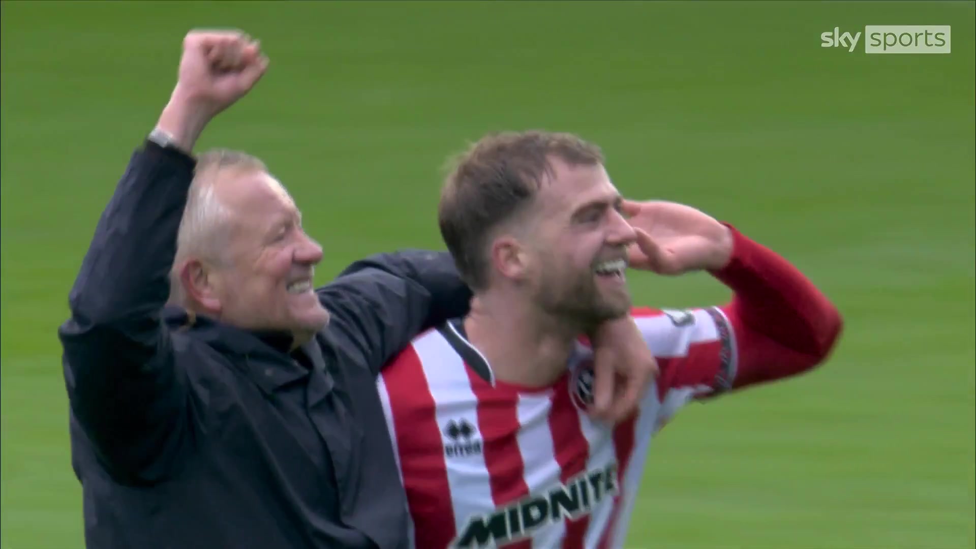 11月24日讯 谢菲尔德联本轮英冠在德比战中打败谢菲尔德星期三,赛后谢菲联主帅克里斯·怀尔德和球员帕特里克·班福德一同庆祝,冰释前嫌。